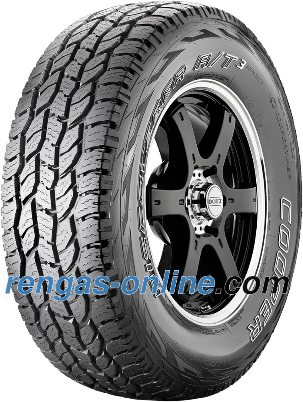 Muuta tietoa: Cooper Discoverer AT3 Sport Malli kaikkiin maastoihin:suunniteltu erityisesti Euroopan markkinoille. Venttiilitön teknologia:Valmistuksessa käytettävissä muoteissa on erityinen venttiiliteknologia rengaskuviossa, joka tarjoaa raikkaan, siistin ja ylellisen ulkonäön. Kulutuspinnan yhdistetyt elementit:Keskimmäiset ja niitä lähimpänä olevat rengaskuvioelementit on suunniteltu pareittain, mikä takaa erinomaisen vakauden ja luotettavan ohjautuvuuden. Avolava- ja SUV-koot:Valikoima eri kokoja suosituille kevytkuorma-autoille ja citymaastureille. M+S-luokiteltu.